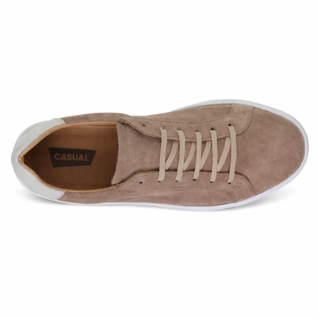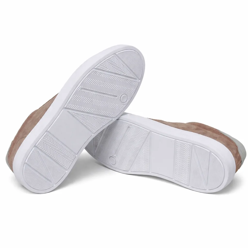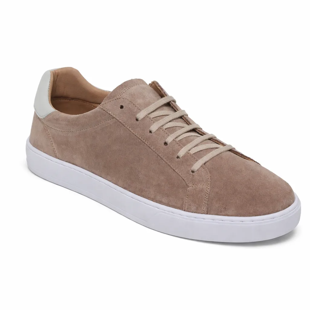 Zapatos Sneakers taupe de piel premium, diseño minimalista y elegante, fabricada en Europa, cómoda todo el día, suela ligera, acabado suave, ideal para looks casuales y urbanos con estilo moderno exclusivo versátil.